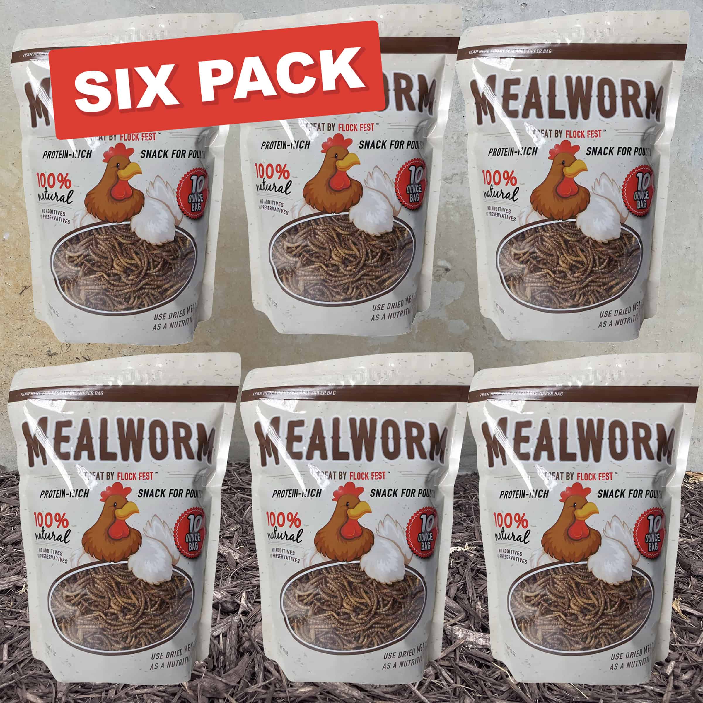 10 oz Bag Dried Mealworms – 6 Pack Flock Fest